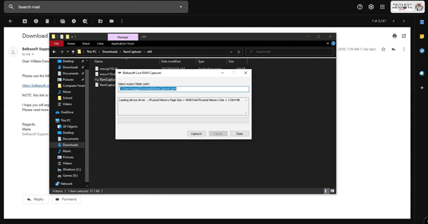 After a few hours, I was sent an email to be able to download the product. After downloading, I opened the Belkasoft RAM Capturer program.