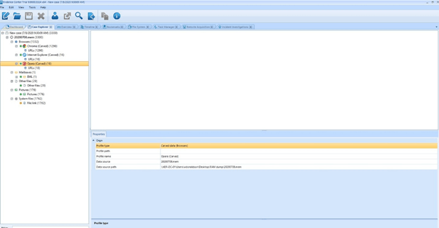 After running the RAM dump several times and trying to open it in WinHex, I became frustrated as nothing seemed to work. Next, I noticed in the RAM dump message that I could use Belkasoft’s Evidence Center to analyze the data. So, I then requested a trial. Once approved, I downloaded the program and opened it.
