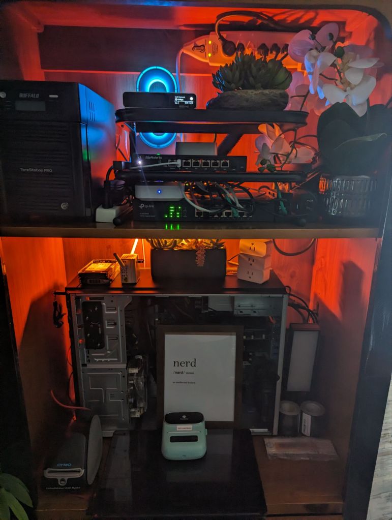 While there are still things to do, such as hardwiring each WAP, I think it is simple enough to diagnose, but allows me enough processing power to run my learning projects. While the above diagram isn’t necessarily industry-standard, designing it specifically for your needs is ideal when dealing with personal projects. The final product will have IP addresses, links added to device icons for landing pages, logins, notes, etc., but for now, and due to security concerns, I will just share this one.