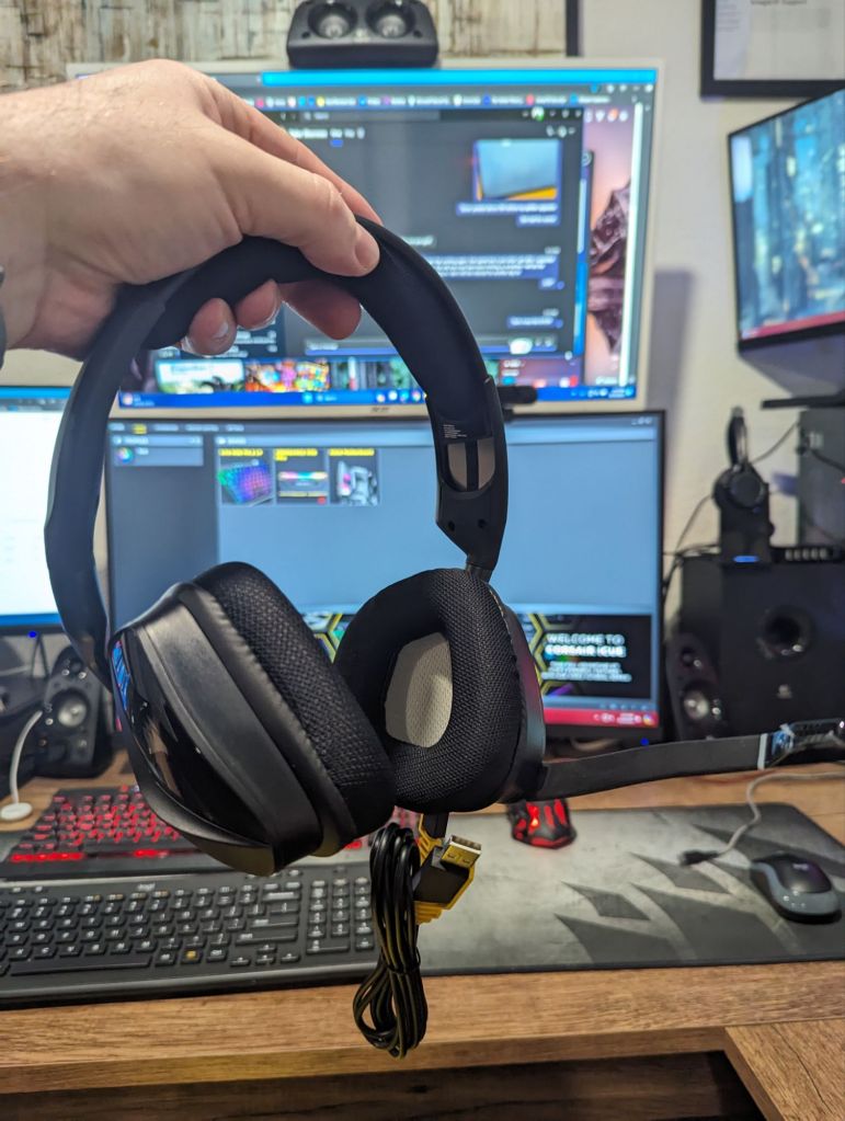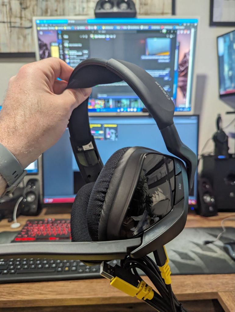 Well, my Plantronics Voyager UC work headset finally decided to give me problems. While it is a quick fix (microphone connection needs to be re-soldered), I figured I would upgrade to a more ‘gaming’ model. I will probably still use the Plantronics for work after fixing since the new headset isn’t Bluetooth enabled. While I love my old Plantronics headset, I must say, being able to stay in Corsair’s ecosystem with the VOIC RGB ELITE lets me eliminate another app and control my RGB across my Corsair keyboard, mouse, headset, RAM, and motherboard. So, after finding a little time in between network projects this weekend to game, I figured I would share my thoughts on the product.