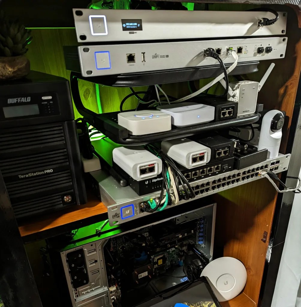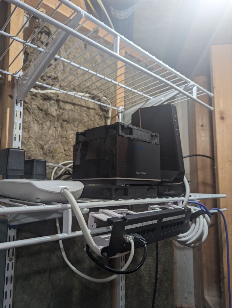 At the moment, we have enough food, water, tools, and equipment to not only survive most disaster scenarios but thrive for a long time after the fact. We also have items such as seeds, water purification systems and tablets, solar power generations, cots, guns and ammo, survival/medical literature, and everything else one can think of. However, it is the area of tech that I believe my safe room really shines! Since I moved in, I have been working on overhauling the home network and getting as much of it as I could in the basement. While the main internet line runs to the utility room directly in front of the safe room (it houses a patch panel, my main NIGHTHAWK mesh router, and lines running to the safe room and both other NIGHTHAWK WAPs), my entire rack is housed in the saferoom, allowing me to control everything from the safety of my soon-to-be guarded walls. For surveillance, I am utilizing Google Nest cameras for both exterior and interior zones (whole house) and a separate UniFi setup just for the safe room. The network in my safe room is segmented from the main, allowing me to have further control and a bit of redundancy should one fail. At the moment, unlike my other houses, I am not using any proximity or door sensors as I find the Nest cameras’ functions to cover this well.