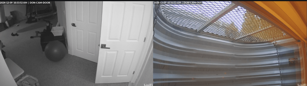 Currently, the room I chose is located in the basement on a wall that is shared with the garage, thus allowing the entrance to be easily concealed as to the untrained eye, it looks like a room shouldn’t be there (unless you are looking from the outside of the house). The room also features an egress window that will be used for air ventilation, water collection, solar power generation, and an emergency exit/entrance (this window is secured with a dual-locking heavy gate and monitored via a UniFi camera with motion detection). The room is also next to the bathroom in the basement; this will allow me to eventually have water access from the safe room using the access panel for the pipes for the jet tub. The room has a newly installed door, although it will need to be upgraded at some point to make it stronger. I may create an add-on metal brace or something, along with another door security lock, similar to the ones I use around the house (Flip Lock). It only has an LED PIN-pad entry lock which works well enough for now, and another UniFi camera monitoring the doorway.