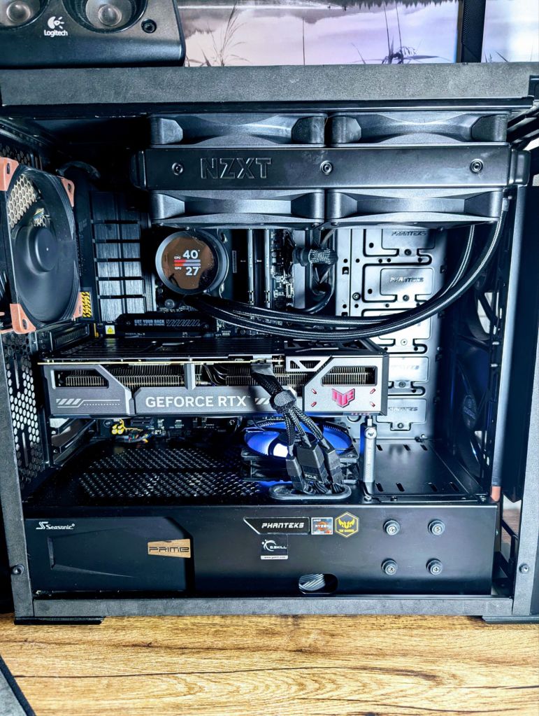 The biggest challenge? Fitting a 280mm AIO into a much smaller case. I ultimately had to run it as an intake—far from ideal—but workable. At the moment, the radiator is resting against the front of the case. It’s secure enough unless someone decides to shake the PC like a maraca.