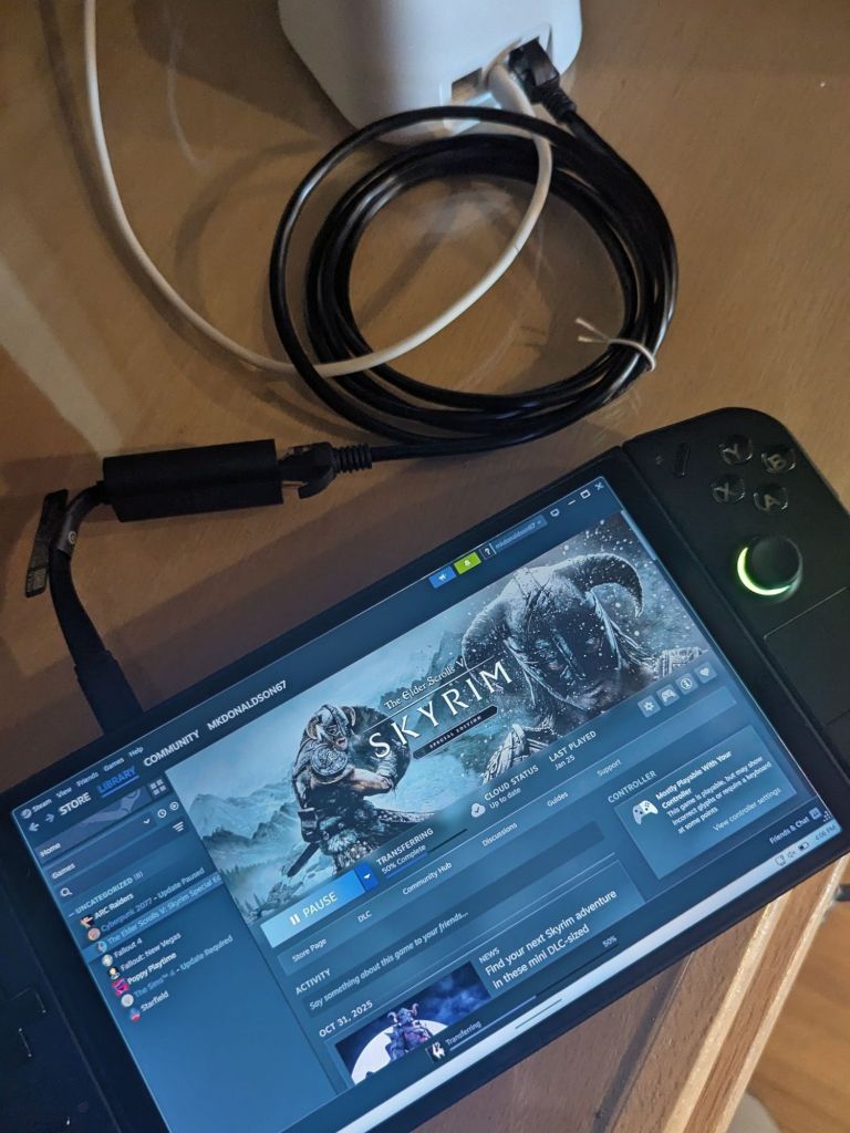 I also gave him my Legion Go 8APU1 that I never use as a late Christmas present, so he can play Skyrim on the go. As my son isn’t old enough for it yet (would probably destroy it), I am glad it will go to use. I also set him up with a docking station, keyboard and mouse, improved charger (120W, I believe), and an ethernet-to-USB-C adapter so he can get hardlined for large downloads.