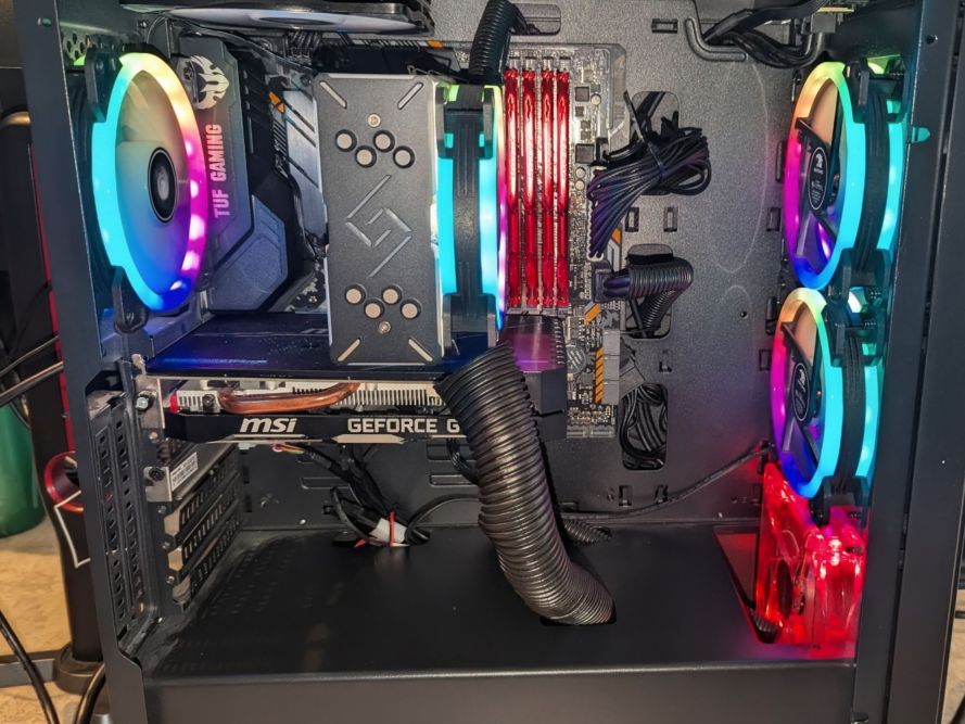 Fix RGB: The 2 DeepCool fans I am using as exhaust on the radiator are RGB-enabled, but I couldn’t locate the proper cord to get them attached to the motherboard, so at the moment, these fans are not lighting up. Not too big of a deal, since they need to be replaced with 140mm fans anyway.